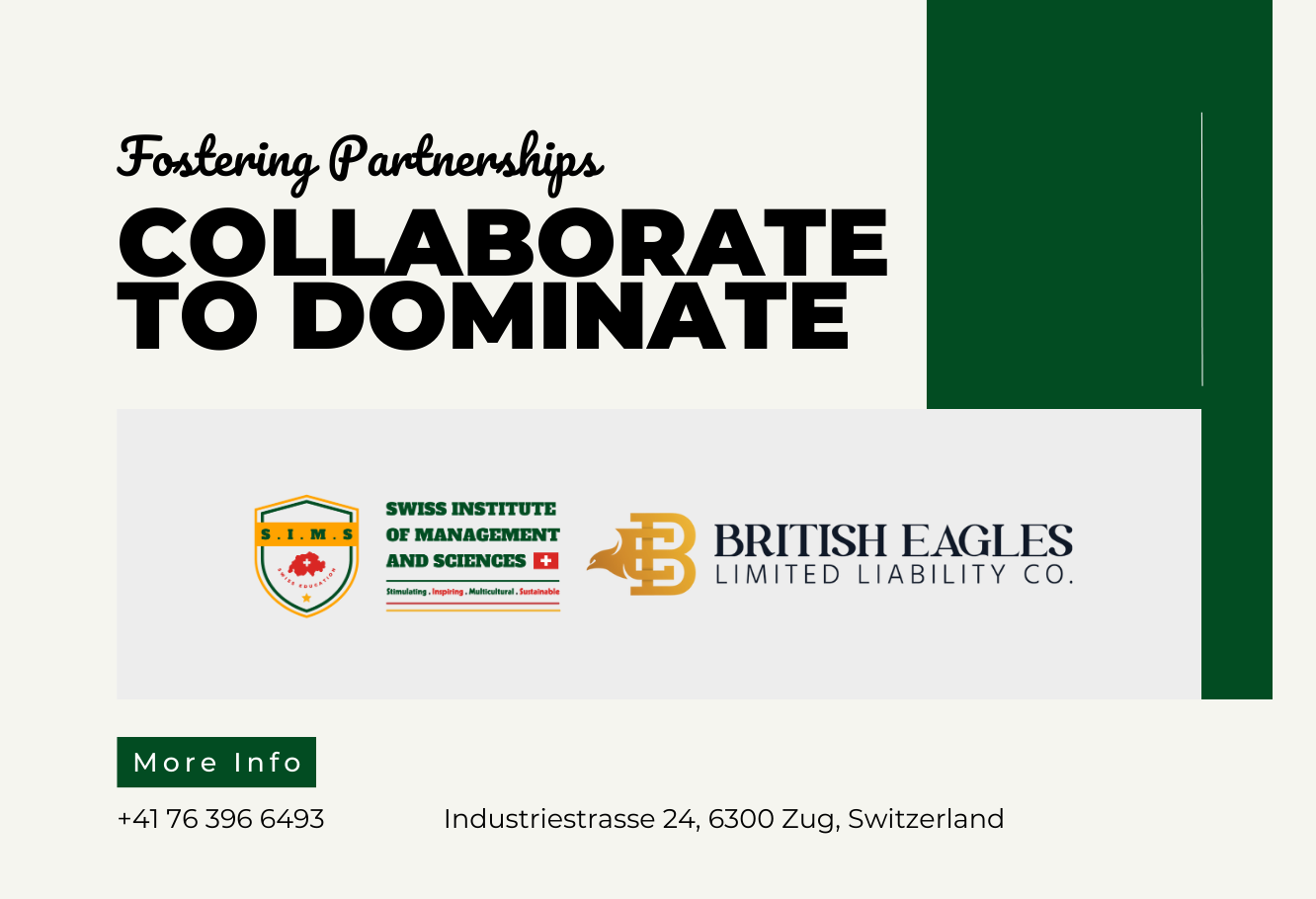 [Zug, October 6, 2023] – The Swiss Institute of Management and Sciences (SIMS) is proud to announce a groundbreaking collaboration with British Eagles, establishing the institution as the exclusive partner in delivering top-tier educational opportunities across the Middle East and North Africa (MENA) region.Details:In a strategic move to elevate the standard of education in MENA, SIMS has joined forces with British Eagles, a renowned institution with a steadfast commitment to academic excellence and global education.Key Points:Exclusive Educational Partnership: SIMS has selected British Eagles as its exclusive partner, entrusting the institution